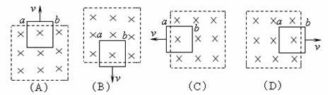 16.粗细均匀的电阻丝围成的正方形线框置于有界匀强磁场中,磁场方向垂直于线框平面,其边界与正方形线框的边平行.现使线框以同样大小的速度沿四个不同方向平移出磁场,如图所示,则在移出过程中线框的一边a、b两点间电势差绝对值最大的是:( )