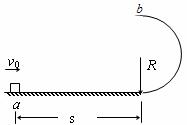 (10分)如图所示,一质量为m的滑块以大小为v0的速度经过水平直轨道上的a点滑行距离为s后开始沿竖直平面的半圆形轨道运动,滑块与水平直轨道间的动摩擦因数为μ,水平直轨道与半圆形轨道相切连接,半圆形轨道半径为R,滑块到达半圆形轨道最高点b时恰好不受压力.试求: