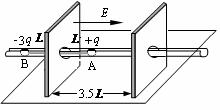 32.(14分)如图所示,沿水平方向放置一条平直光滑槽,它垂直穿过开有小孔的两平行薄板,板相距3.5L.槽内有两个质量均为m的小球A和B, A球带电量为+q, B球带电量为-3q,两球由长为2L的轻杆相连,组成一带电系统.最初A和B分别静止于左板的两侧,离板的距离均为L.若视小球为质点,不计轻杆的质量,现在两板之间加上与槽平行场强为E的向右的匀强电场后(设槽和轻杆由特殊绝缘材料制成,不影响电场的分布),带电系统开始运动.试求: