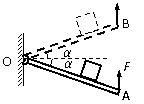 一块木板可绕过O点的光滑水平轴在竖直平面内转动,木板上放有一木块,木板右端受到竖直向上的作用力F,从图中位置A缓慢转到位置B,木块相对木板不发生滑动。则在此过程中,力F和F的力矩MF大小的变化情况是( )