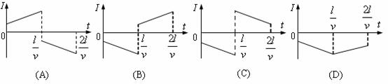 图中两条平行虚线之间存在匀强磁场,虚线间的距离为l,磁场方向垂直纸面向里。abcd是位于纸面内的梯形线圈,ad与bc间的距离也为l。t=0时刻,bc边与磁场区域边界重合(如图)。现令线圈以恒定的速度v沿垂直于磁场区域边界的方向穿过磁场区域。取沿a®b®c®d®a的感应电流方向为正,则在线圈穿越磁场区域的过程中,感应电流I随时间t变化的图线可能是(