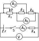 在如图所示电路中,电源电动势为E、内阻为r,R2、R3、R4均为定值电阻,电表都为理想电表。闭合电键S,当滑动变阻器R1的滑片P向右移动时,下列说法中正确的是( )