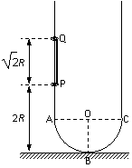 (14分)两根长直轨道与一半径为R的半圆型圆弧轨道相接于A、C两点,B点为轨道最低点,O为圆心,轨道各处光滑且固定在竖直平面内。质量均为m的两小环P、Q用长为R的轻杆连接在一起,套在轨道上。将MN两环从距离地面2R处由静止释放,整个过程中轻杆和轨道始终不接触,重力加速度为g,求:
