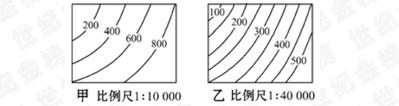 且坡度和比例尺呈正比,很明显,A图的比例尺大于乙图,很明显甲图的坡度较大,因此河流的流水流速较快。