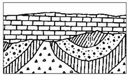 1.读下图,甲处地质构造的形成及其上部缺失的地质过程是 ( )