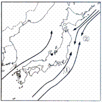 22。海雾大多是因为暖湿空气流经较冷表面(冷洋流)被冷却饱和而形成;冷、暖洋流交汇处往往具备这样的大气环流条件,很容易形成海雾。读日本附近海域洋流示意图,回答下列问题。