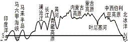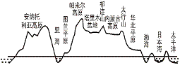 ⑴地形复杂多样,起伏很大,高原、山地面积广;⑵地势中部高,四周低,平原多分布在河流的中下游;⑶大陆东缘有岛弧带 |