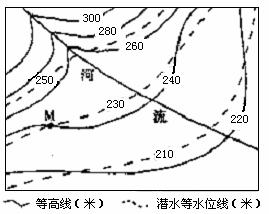 下图为我国某区域等高线和等潜水位线图。回答20-21题。