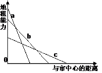 22.经济因素是市场经济条件下影响城市功能区的主要原因。一块土地由哪种活动占有,取决于这块土地的租金高低和各种活动的付租能力两个方面。左图是各类城市用地付租能力随距离递减示意图,右图是某城市地租等值线分布图,读图后回答下列问题。