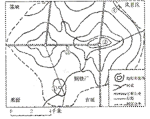 下图是某城市的等值线分布图,图中a>b>c 。据图分析回答19-20题。