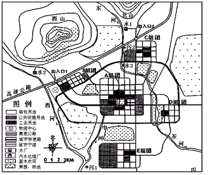 23. 下图为某近百万人口规模的城市总体规划图,回答下列问题: