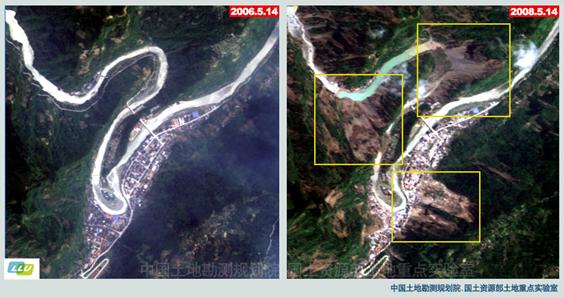 (3)对照地震前、后影像,图示区域山体发生的主要变化是 ;