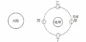 3.下图是日、地、月位置示意图,甲、乙、丙、丁表示月球绕地运动的位置。当发生日食时,月球的位置是
