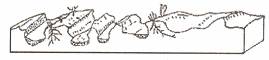 有一些干涸湖底,常因干缩龟裂,定向风沿裂隙处进行侵蚀,使之日益增大,使原来平坦的地面形成许多不规则的浅槽和槽间垄脊,这种地貌称雅丹地貌。读“雅丹地貌示意图”,完成9-10题。