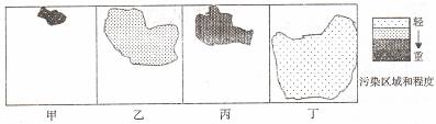下图为我国莱条外流河的某处发生水体污染后,有关部门在该河甲、乙、丙、丁四个断面处测得的污染状况图。完成15-16题。
