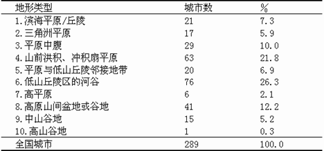 读我国某时期城市在不同区域地形类型的分布表,完成第12-13题。
