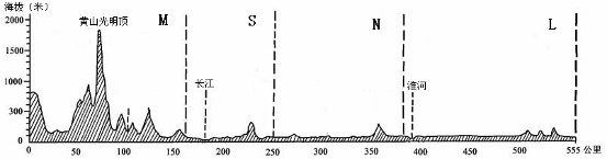 下图为我国某区域地形剖面图,剖面线跨度为5个纬度。读图完成第14-16题。