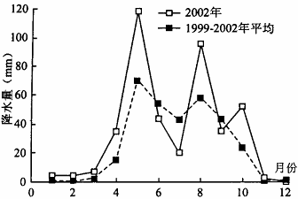 C.降水偏多且季节变化小 D.降水偏少且季节变化小