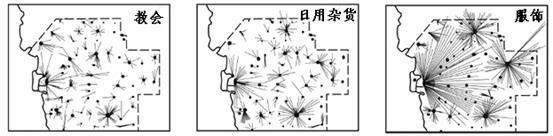 A.教会-日用杂货-服饰 B.日用杂货-服饰-教会