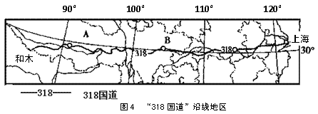 “318国道”是一条代表泱泱大中国风采的大道,读下图回答10--11题。