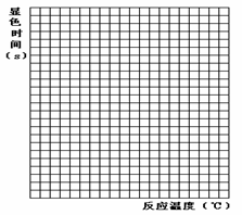 (6)若实验得知,反应速率v=k·c(H+)·c(I-),k为常数。请在下列坐标图中画出H2SO4的浓度分别为0.1mol/L和0.2mol/L时,显色时间与反应温度的变化曲线,并作出必要标示。