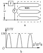图a为某型号电热毯的电路图,将电热丝接在u=156sin120πt V的电源上,电热毯被加热到一定温度后,由于P的作用使输入的正弦交流电仅有半个周期能够通过,即电压变为图b所示波形,从而进入保温状态.则此时交流电压表