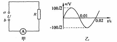 8.在如图甲所示的电路中,电阻R的阻值为50Ω,在ab间加上图乙所示的正弦交流电,则下面说法中正确的是 ( )
