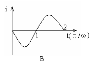 磁极的缝隙间形成了辐向均匀磁场。磁场的中心与铁芯的轴线重 合。当铁芯绕轴线以角速度ω转动的过程中,线圈中的电流变化图象是下图中的哪一个?(从图位置开始计时,NS极间缝隙的宽度不计。以a边的电流进入纸面,b边的电流出纸面为正方向)