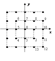 原点处标0,点(1,0)处标1,点(1,-1)处标2,点(0,-1)处标3,