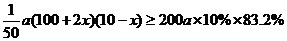 19. 解:(1)由已知条件可知:降低征税率为(10-x)﹪,农产品收购量为