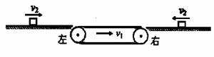 顺时针方向运动,传送带的左、右两端皆有一与传送带等高的光滑水平面,一物体以恒定的速度v2沿水平面分别从左、右 两端滑上传送带,下列说法正确的是: ![]()