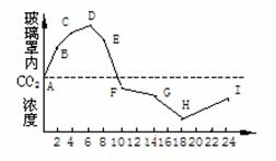 将一植物放在密闭的玻璃罩内,置于室外进行培养,假定玻璃罩内植物的生理状态与自然环境中相同。用CO2浓度测定仪测得了该玻璃罩内CO2浓度的变化情况,绘制成如下图的曲线,下列有关说法正确的是( )