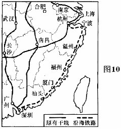 2、②地区最热月均温约为24℃~28℃,③地区西海岸最热月均温约为16℃~21℃,导致这种气温差别的最主要因素是 ( )![]()