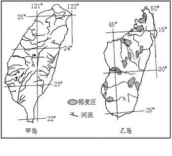 (3)根据材料三判断,甲岛干旱大多发生在 地区。