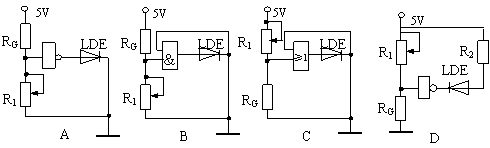 在下列模拟路灯照明电路的光控开关电路中,RG为半导体光敏电阻、LED为发光二极管,不能实现天暗时LED发光、天亮时LED熄灭的电路的是 ( )