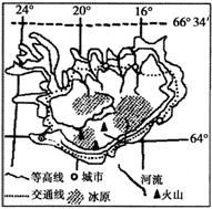 冰岛多次被联合国评为“最宜居国家”。读冰岛地形图(右图),回答21-23题。![]()