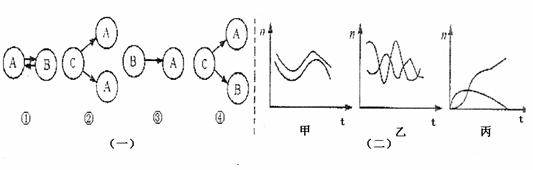 54.下图(一)中所示的生物间关系,A、B代表两种生物,C代表生物的生活条件,箭头表示营养流动的方向;图(二)在坐标系中表示两种生物之间的关系。下列图(一)(二)中所表示的生物关系配对正确的一组是