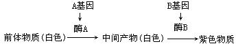 ⑶推测两亲本白花植株的杂交组合(基因型)是 或 ;用遗传图解表示两亲本白花植株杂交的过程(只要求写一组)。