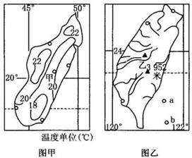 1.图甲是甲岛7月等温线分布图,图乙是水系分布图,下列叙述正确的是: