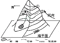 3.若三条线为某地等高线,甲处因降水形成一径流,则下列说法正确的是: