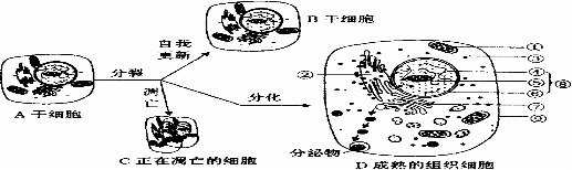 (1)由A细胞形成的B细胞仍然保持着其特有的____ _____能力,A细胞到D细胞的过程的