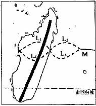 读马达加斯加岛略图,图中粗黑线为山脉,M为20℃等温线。据图回答29-30题。