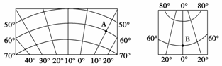 读下面两幅经纬网图,回答8-9题。