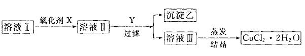 请填写下列空白: (1)孔雀石的主要成分是CuCO3·Cu(OH)2(碱式碳酸铜),受热易分解。上图中的F是____________。 (2)写出明矾与过量NaOH溶液反应的离子方程式:____________。 (3)图中所得G和D都为固体,混合后在高温下可发生反应,写出该反应的化学方程式____________。 (4)每生成1molD,同时生成____________mol E。 四、(本题包括2小题,共27分) 18.(16分)已知H2O2、KMnO4、NaClO、K2Cr2O7均具有强氧化性。从溶液中将Cu2+、Fe2+、Fe3+沉淀为氢氧化物所需pH分别为6.4,6.4.3.7。现有某氯化铜晶体中含有FcCl2杂质,为制取纯净的CuCl2·2H2O,首先将其制成水溶液,然后按如图所示步骤进行提纯。
