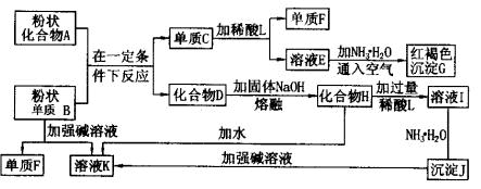 现有可供选择的试剂组(前X后Y): A.H2O2、CuO B.KMnO4、Cu(OH)2 C.NaClO、CuO D.K2Cr2O7、CuCO3 回答下列问题: (1)最适合本实验的试剂组是______________。 (2)加入氧化剂的目的是______________。 (3)本实验能否用加碱除去FeCl2?为什么? ____________________________________________________________。 (4)最后能否直接蒸发结晶?若不能,应如何操作? ____________________________________________________________。 19.(11分)某些金属氧化物跟熔融烧碱反应生成盐。根据以下化学反应框图填空: