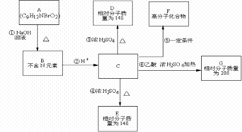 29、(14分)芳香族化合物A(化学式为C9H12NBrO2)在一定条件下有如下的转化关系,其中1mol C与Na完全反应生成1 mol H2,若与NaHCO3完全反应也能产生1mol CO2,D和E互为同分异构体,但D可以使溴的四氯化碳溶液褪色,而E分子中有一个苯环和一个五元环。