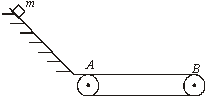 如图所示,传送皮带的水平部分AB是绷紧的。当皮带不动时,滑块从斜面顶端静止开始下滑,通过AB所用的时间为t1,从B端飞出时速度为v1。若皮带顺时针方向转动时,滑块同样从斜面顶端由静止开始下滑,通过AB所用的时间为t2,从B端飞出时的速度为v2,则t1和t2、v1和v2相比较,可能的情况是:(