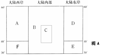 (1)图A中F区域的气候类型与图B中的 图相对应,该区域的气候特点是 ,成因是