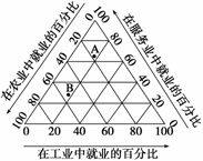 (3)乙图反映的是国家劳动力的就业结构,英国属于 (A、B)类国家,A、B两类国家劳动力的就业结构上差异是