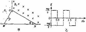 的匀强磁场,方向分别垂直于纸面向里、向外;整个空间存在着竖直方向的、随时问交替变化的匀强电场(如图乙所示,竖直向上方向为正方向)。在距